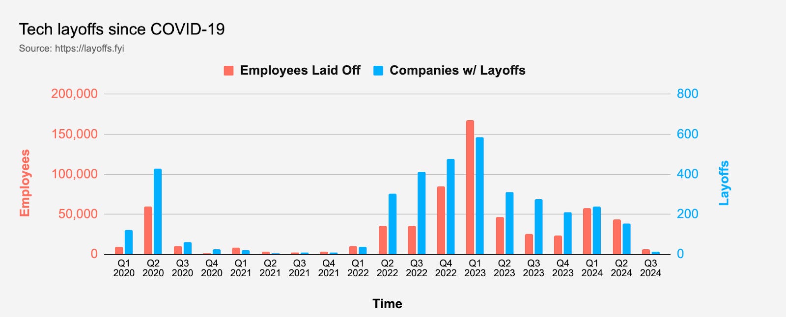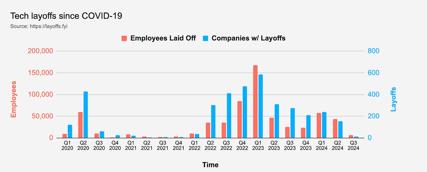 Diagram 1: layoffs.fyi data on tech layoff since Q1 2020